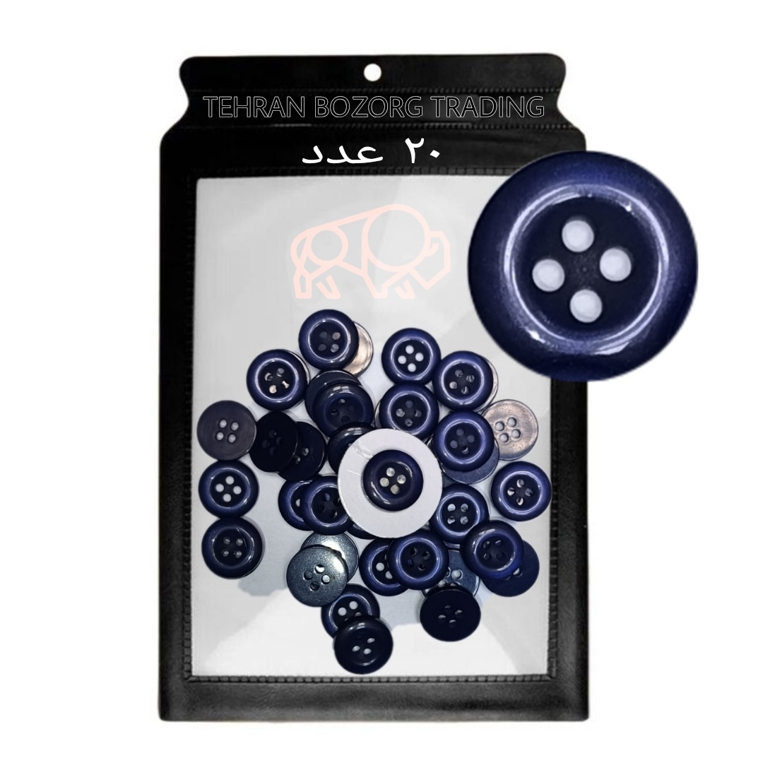 دکمه آبی کاربنی پک 20 عددی پیراهتی 1 سانت