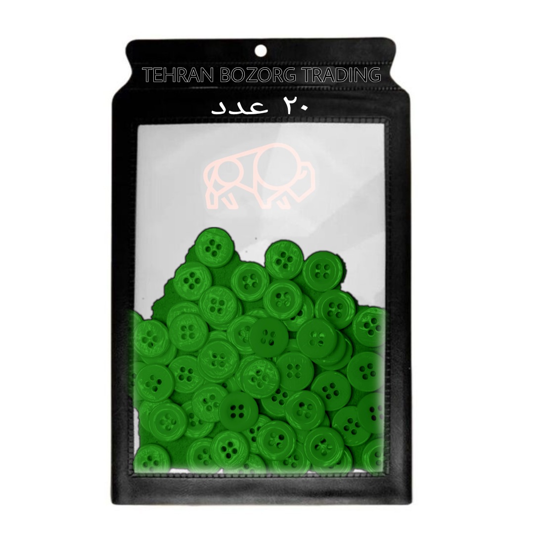 دکمه سبز پک 20 عددی پیراهتی 1 سانت