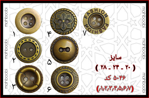 دکمه 5 سایز طرح فلزی مدل پلی استر کد 5159 بسته 500 عددی