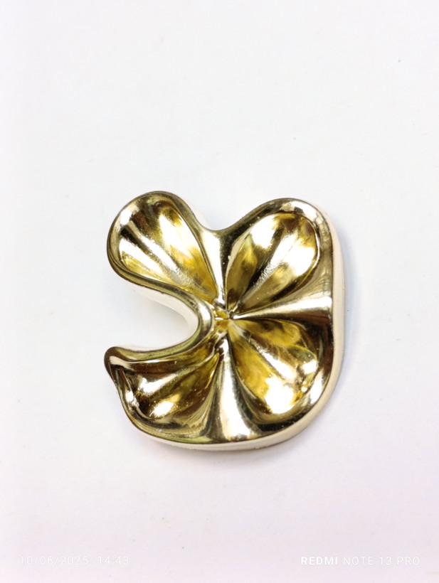 دکمه تزئینی پایه دار از جنس **ABS با روکش فلزی آبکاری شده**، در طرح زیبای **گل چهاربرگ (نماد شانس)**، با رنگ **طلایی باکیفیت و آبکاری اصل** که تضمین کننده دوام و درخشندگی است. این محصول در **دو سایز 36 و 40 میلیمتر** موجود است و گزینه ای عالی برای: