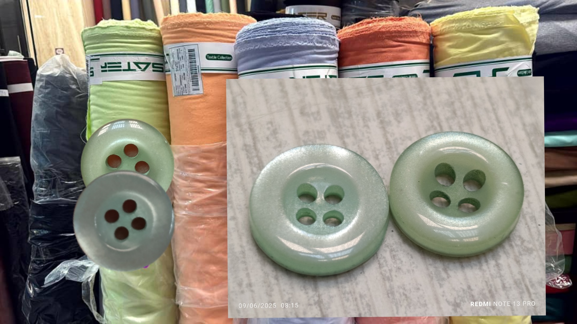 رنگبندی: این دکمه در حدود 20 رنگ متنوع تولید میشود که متناسب با انواع پارچه و سلیقهها قابل انتخاب است.