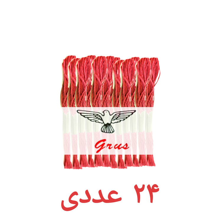 نخ گلذوزی و نخ کوبلن قرمز پک 24 عددی