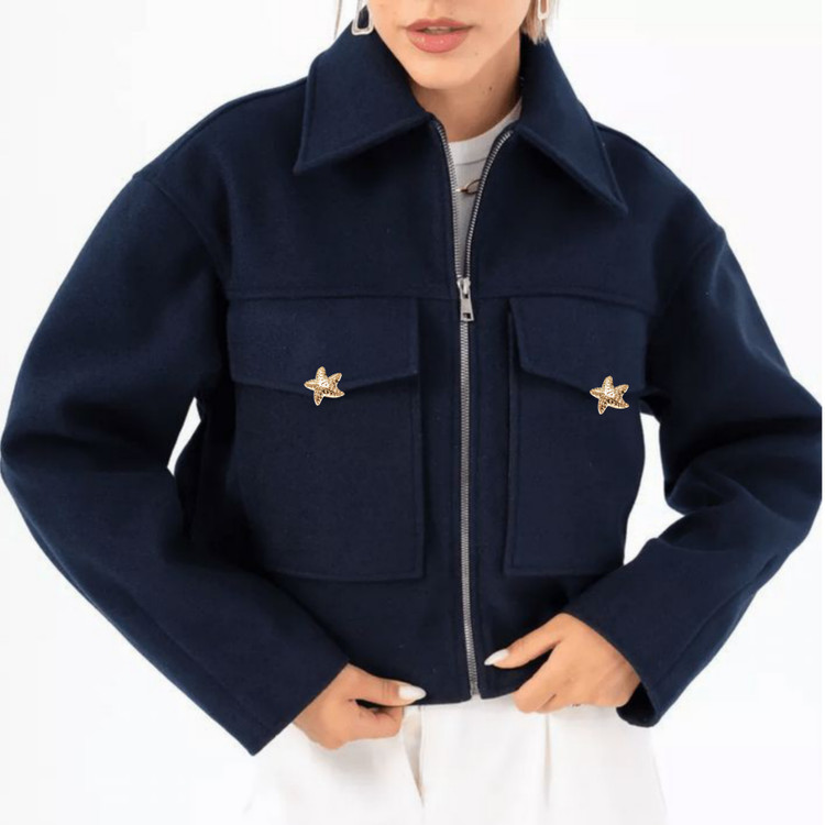 如果你正在寻找让风格独特的细节,金色金属纽扣就是答案。它们在 Pinterest 和社交媒体 上非常流行,以趣味设计让简单的配饰变成时尚亮点。